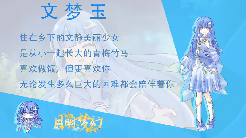 游戏拥有两个结局(都是好结局)和12张精美CG(不包含差分)。游戏的主题融合了部分神话的元素,以幸福为主题,通过主人公如何找到幸福为线索,构建了一个奇妙而美丽的世界。在游戏中你将扮演主人公李小明回到儿时的故乡,探寻神秘的真相,解开困扰月梦乡千年的谜团